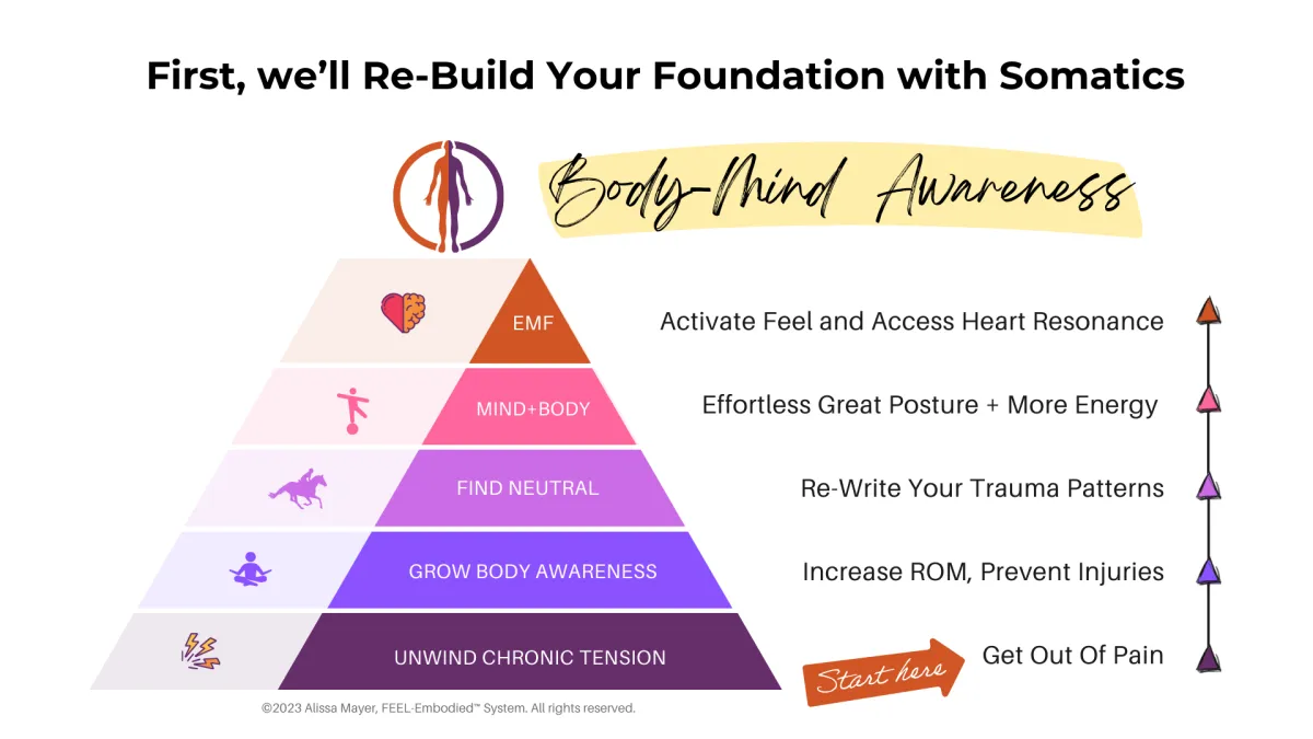 Our lessons not only help you get your body-awareness dialed in with the right kind of Somatic Movement, I'll also show you a very specific system of applying this to working with horses to build more connection (and trust) while you work on your Feel. But it has to start with YOU.